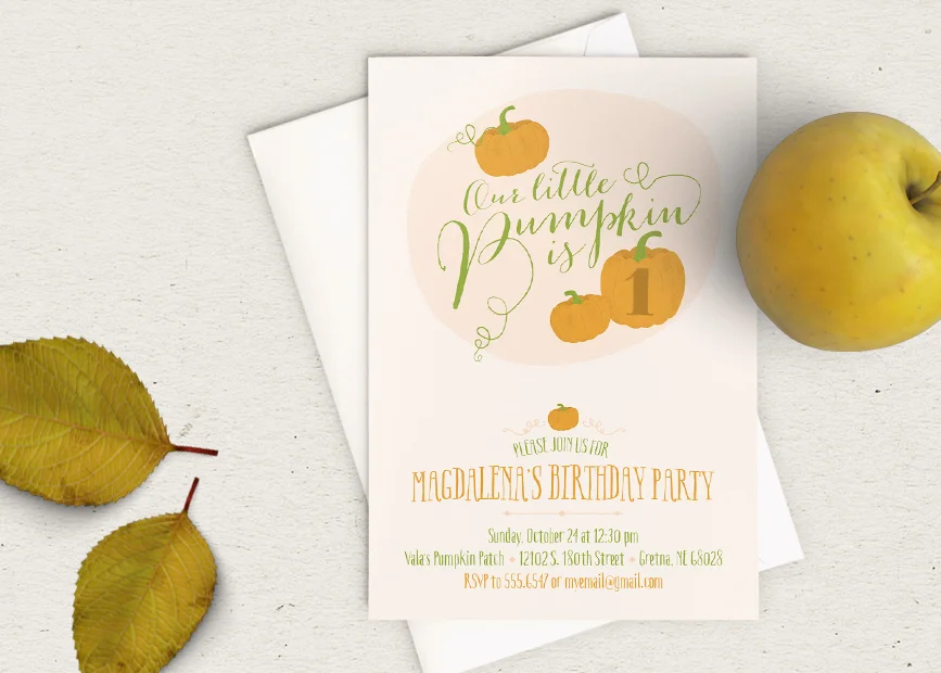 I love fall. Love, love, love fall. I wish it would last so much longer than it does. Here is a little birthday invite to get you in the fall mood. Happy apple picking and pumpkin hunting!